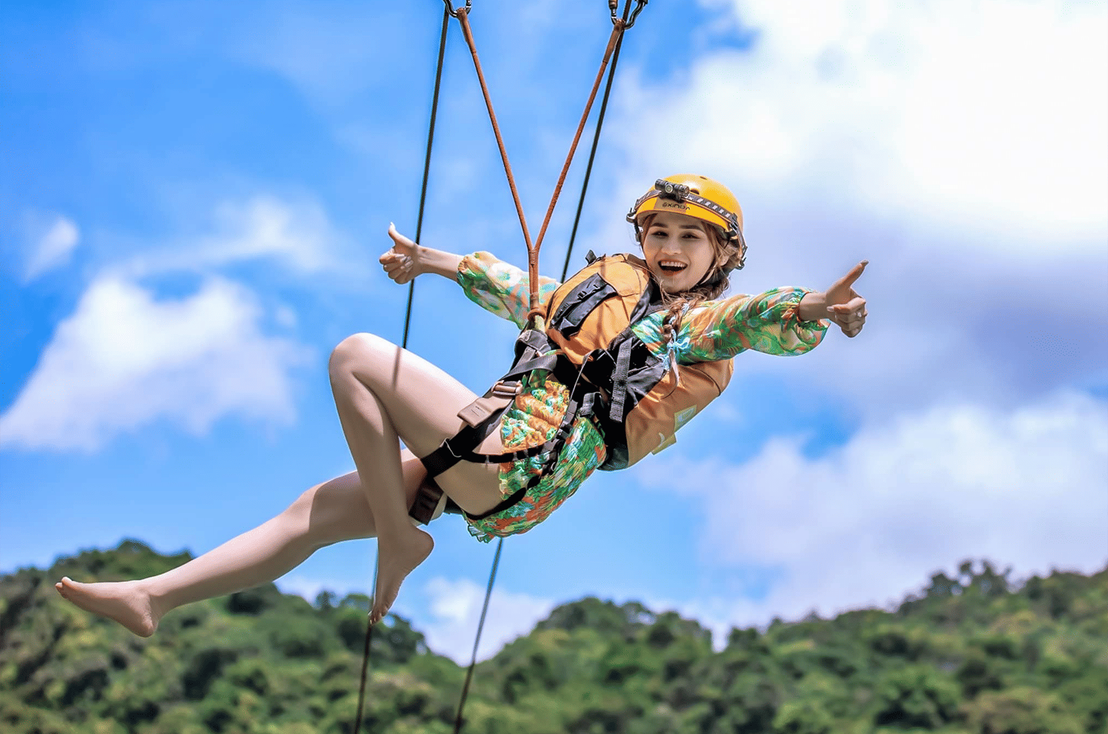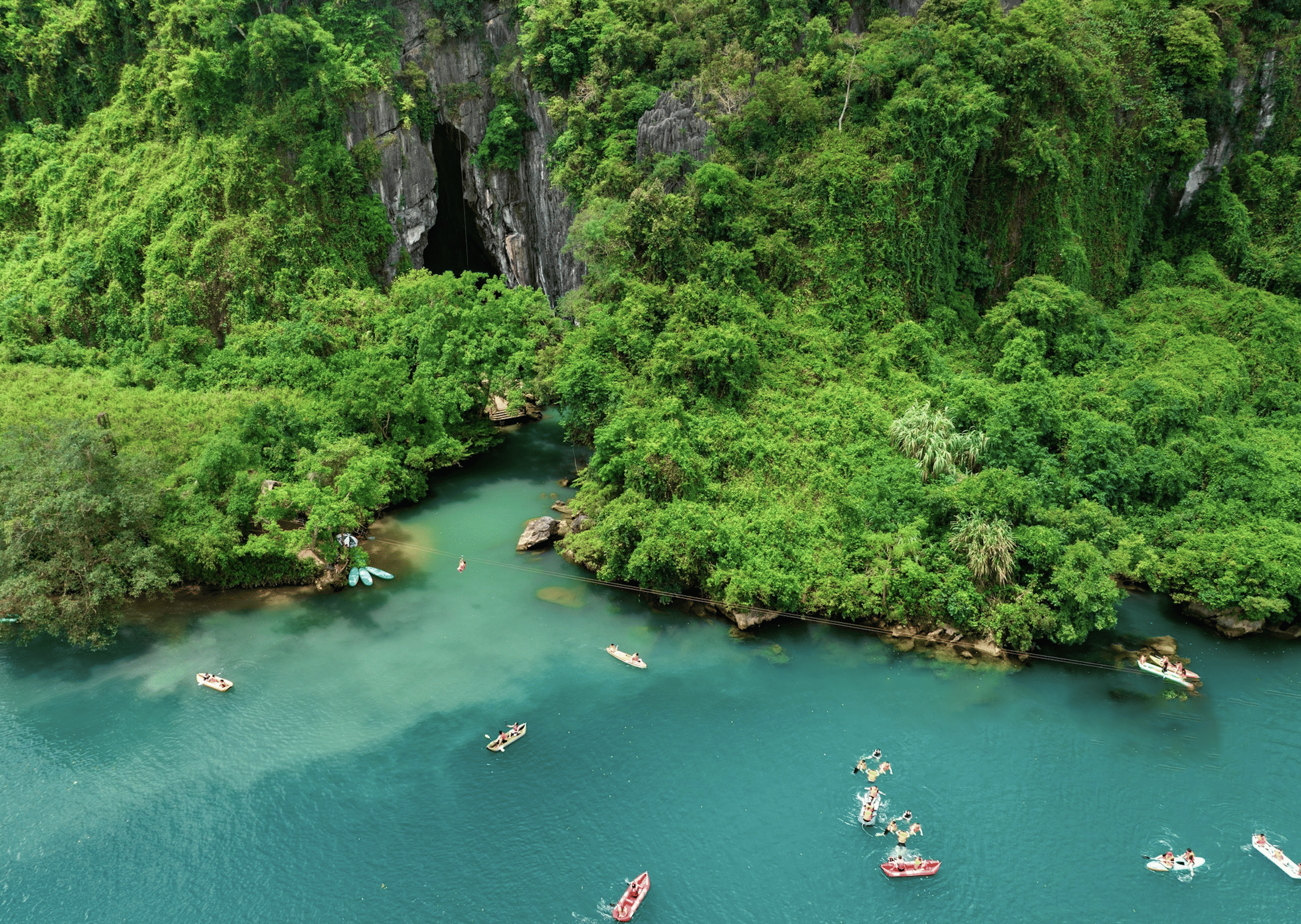 • You will continue your adventurous journey at Dark Cave tourist area. Conquering the longest two-wire Zipline game in Southeast Asia, visitors will experience the feeling of "flying" over the Chay River to reach Dark Cave.