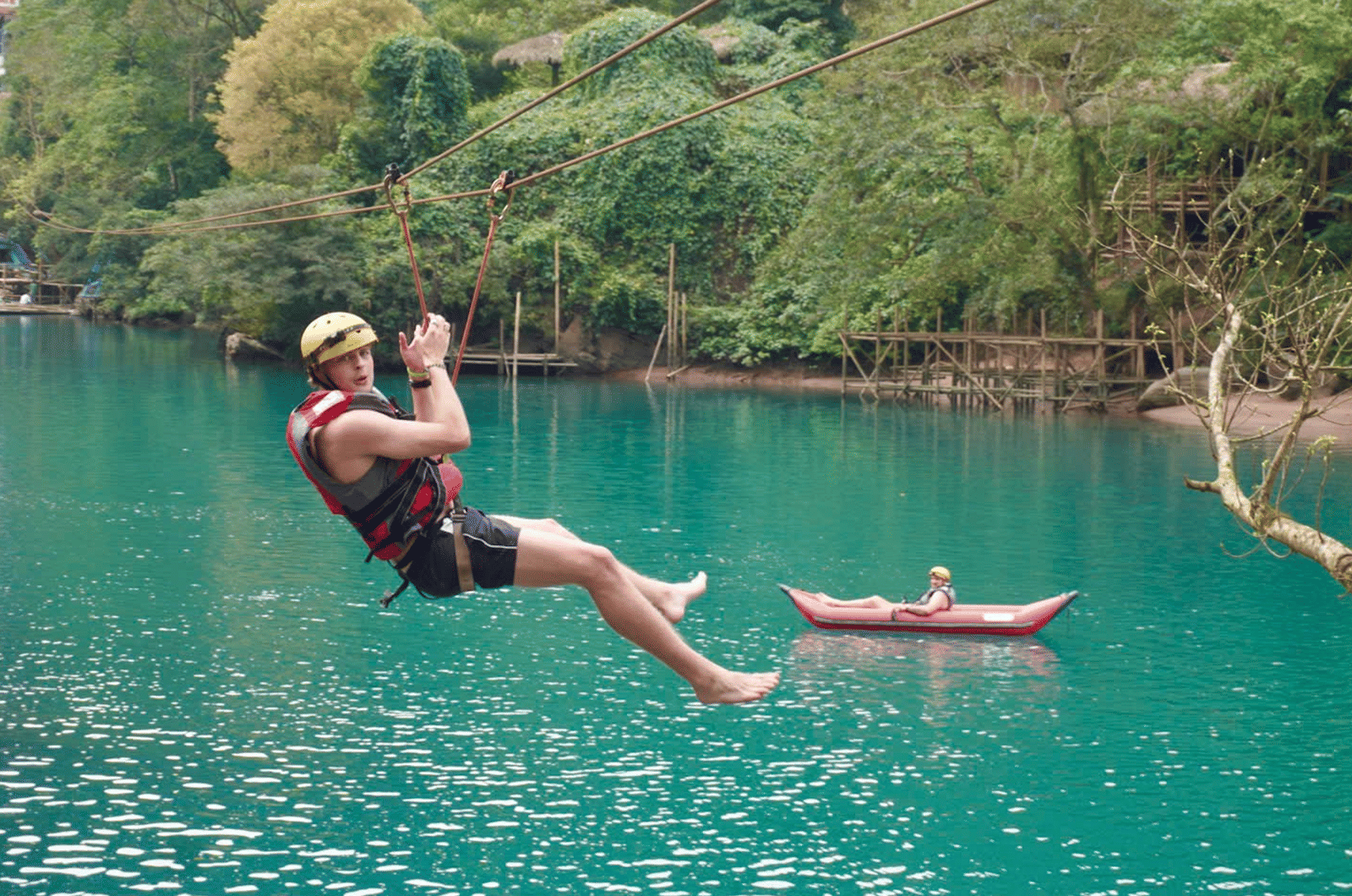 • After that, visitors will continue with other recreational activities on Chay River such as short Zipline and Kayaking, enjoying the fresh and cool beauty of the river.