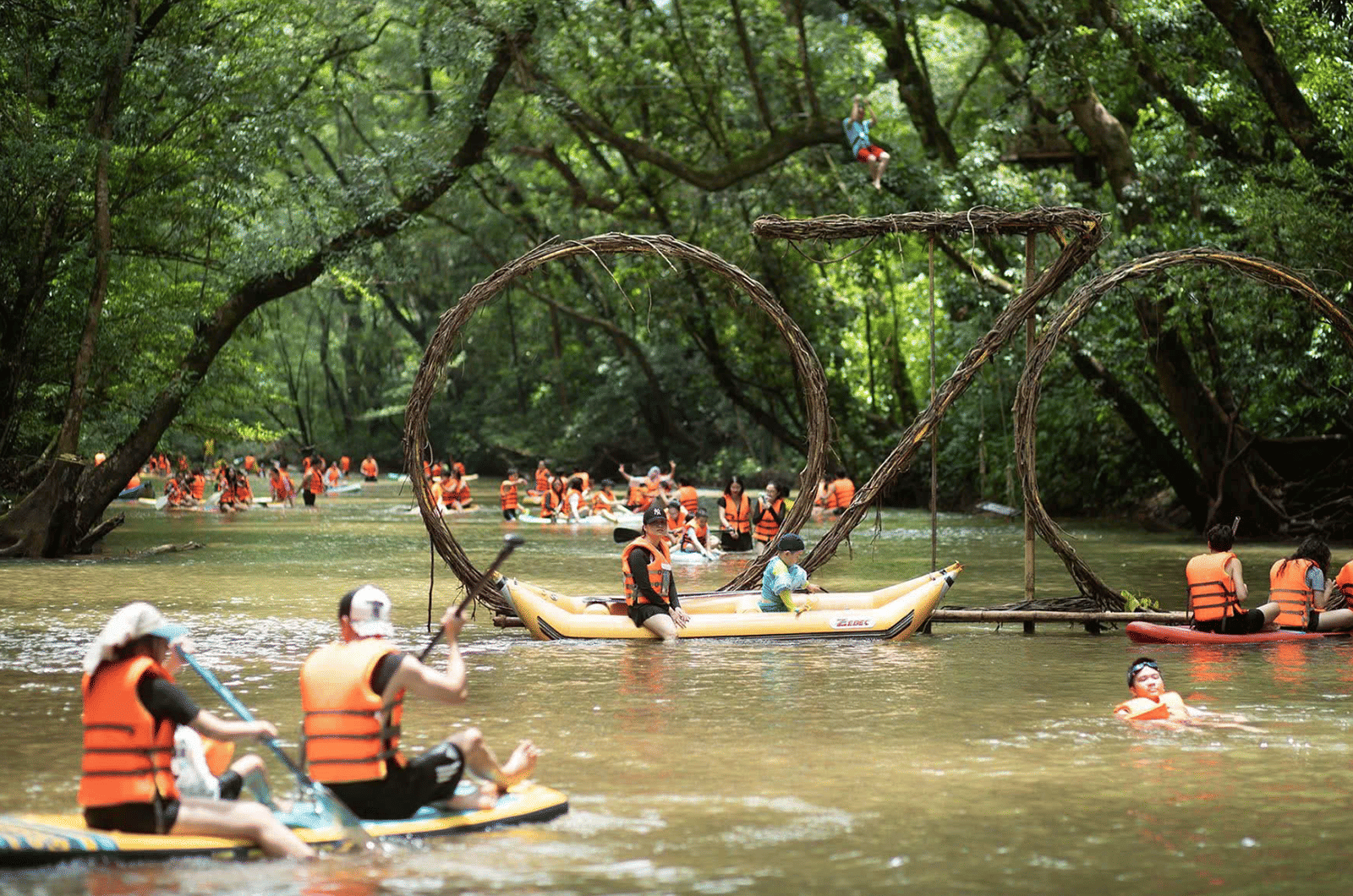 Experience the thrill of zip-lining, tree climbing, and kayaking at Ozo Park