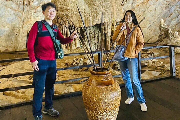 A one-day tour from Hue to Phong Nha Cave and Paradise Cave takes you on an unforgettable journey through the stunning landscapes of Phong Nha-Ke Bang National Park. Start with a scenic boat ride along the Son River, enjoying the picturesque views of Tram Me village. Hike 1.6 km through lush rainforest and climb 500 steps to reach Paradise Cave, one of Asia's longest dry caves, famous for its impressive stalactites. Immerse yourself in the tranquility of nature and discover the unique beauty of these natural wonders.